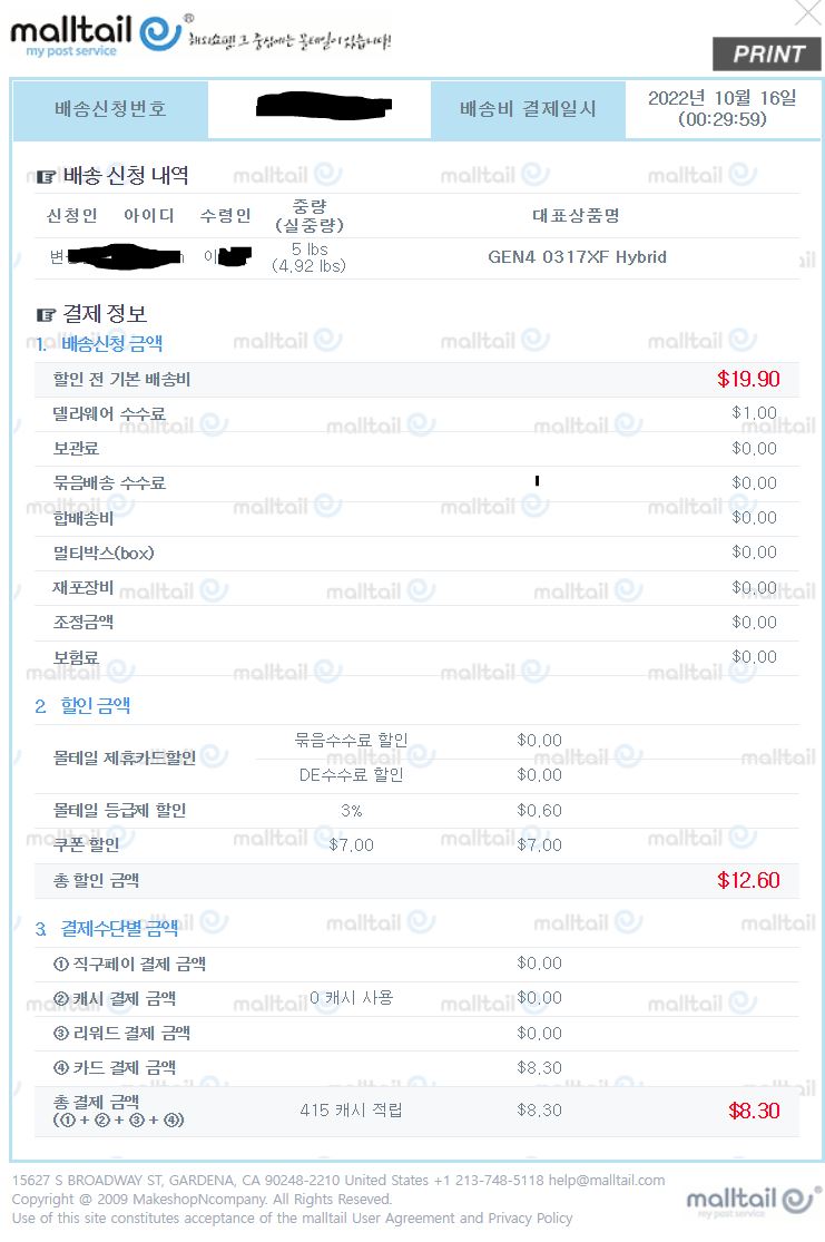 국민카드로 결제하면 5달러 추가할인 이벤트 해서 최종 8.30 나오네요.