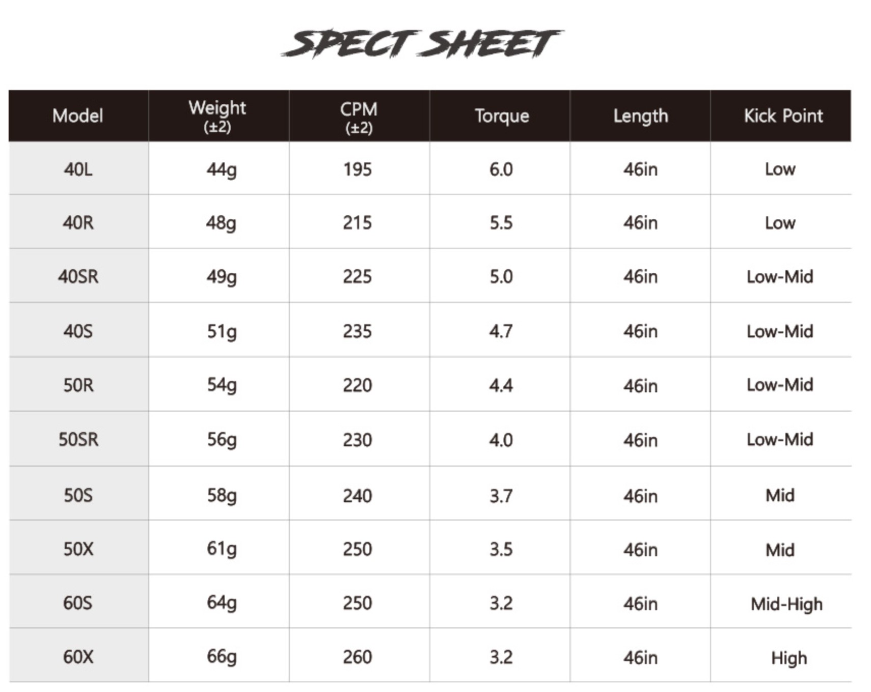 샤프트 스펙챠트에 CPM이 써져있는것 자체가 말이 안되는것입니다..