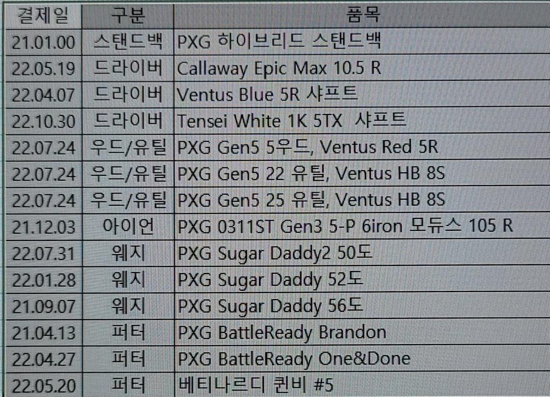 저랑 드라이버+아이언+웨지+퍼터(#17)가 같네요.ㅎ 샤프트까지.