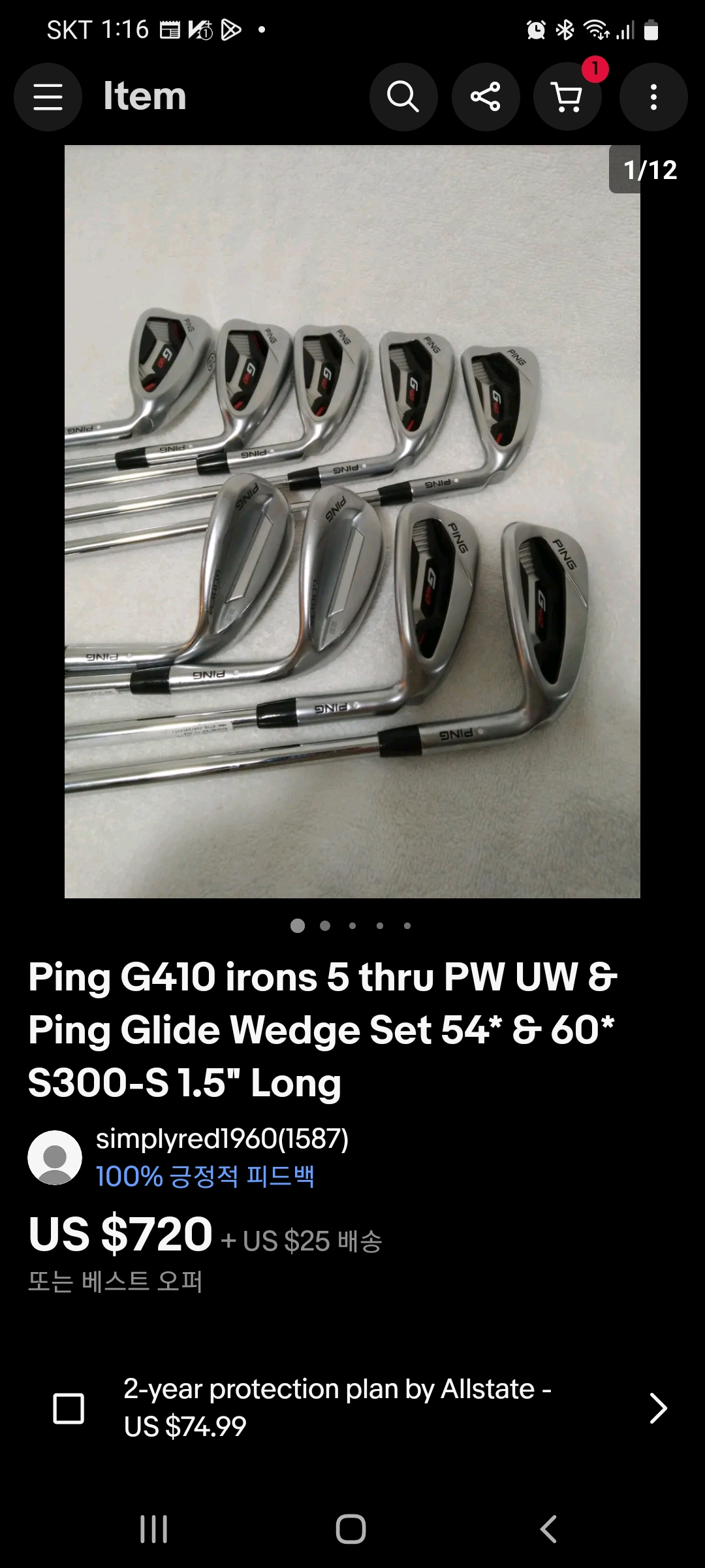100만원이 넘는 금액으로 핑g410을 이베이에서 해외 직구하는 이유도 화이트닷(3도업라이트라이각)에 1.5인치가 긴 샤프트에 다골120 s300 이 되어있고 웨지까지 모두 피팅이 되어 있어서입니다.