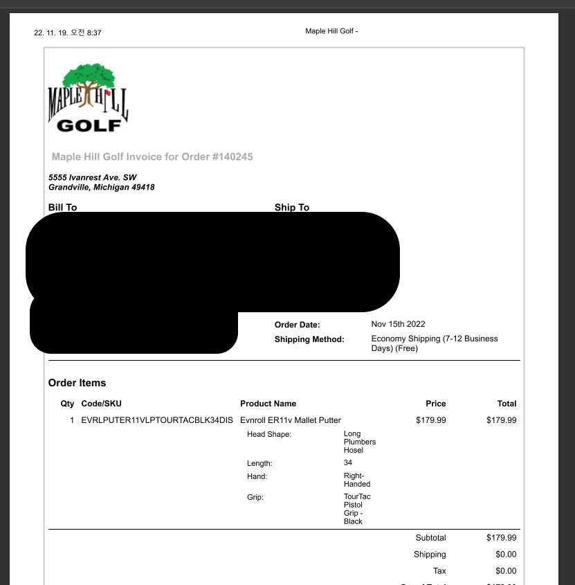 Maplehill 이븐롤 퍼터 관련 추가 > 골프포럼
