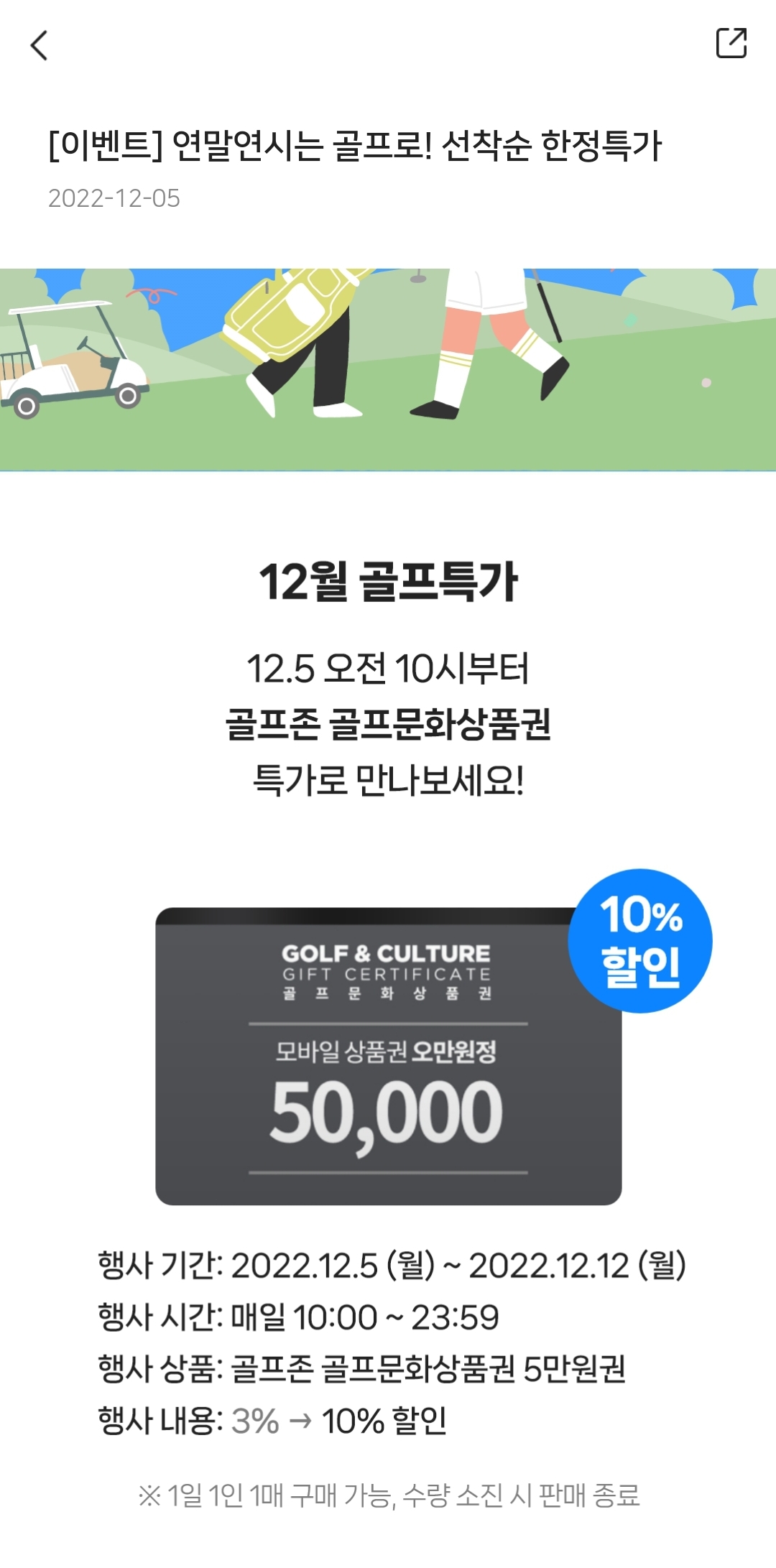오~매일 1장 구입할수 있다고 하니까 그린피 10% 할인 받으실수 있겠어요 ㅎ