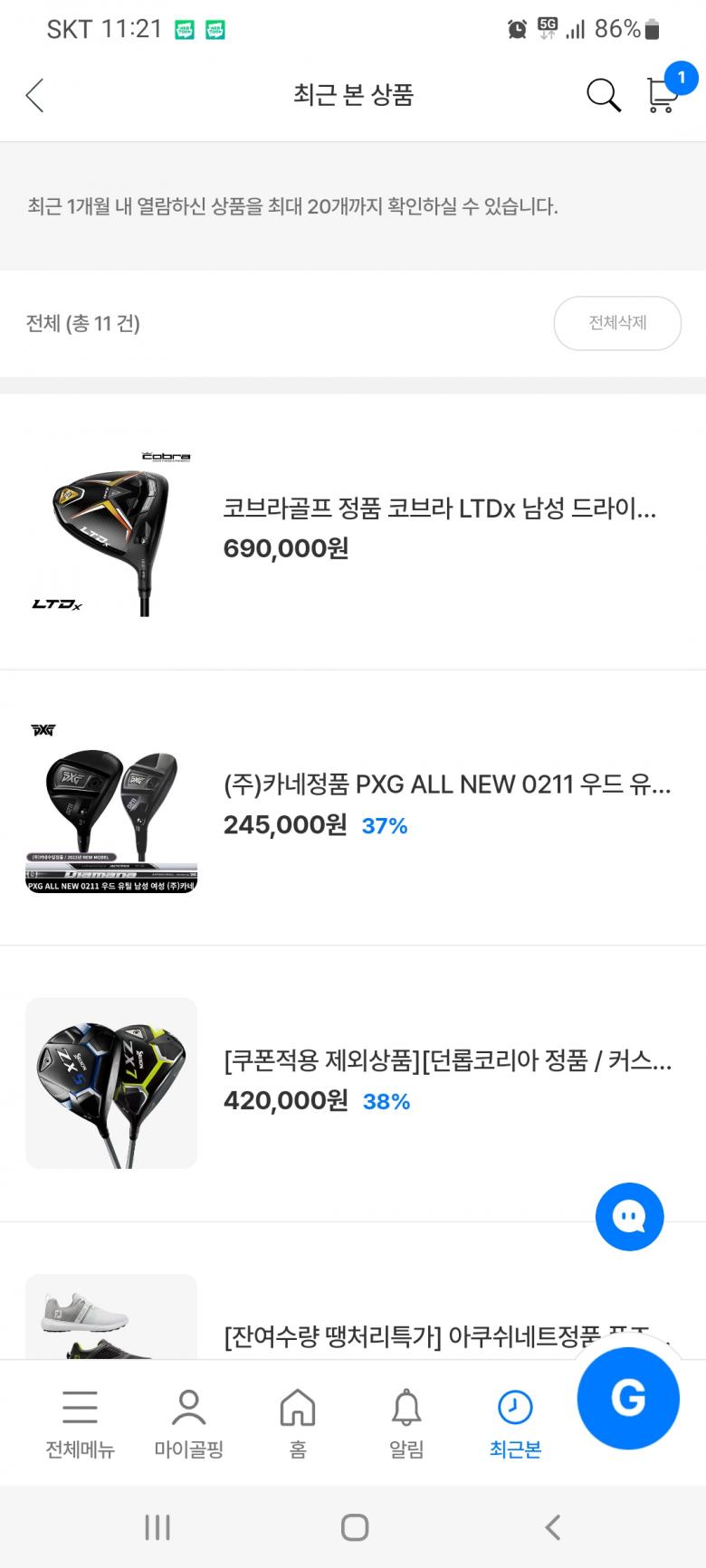 오늘 다나와에서 최저가 검색하다 우연히 *핑에 들어갔는데 zx 드라이버가 42에 팔고 있었습니다.