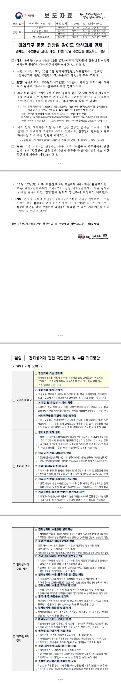 합산 과세가 고민 되었지요. 배대지에 드라이버 출고 보류 걸어두고 우드 비행기 타고 들어오면 드라이버 출고 요청을 해야 하니... 우드 국내 반입되는 일정만 체크하다 우연히 아래와 같은 보도자료를 봤네요. 결론은 다른날 샀으니 그냥 둬도 된다 입니다. 아래 자료는 합산 과세에 대한 기준이라 필요한 분 계실듯합니다. 늦게 알았네요. ^^