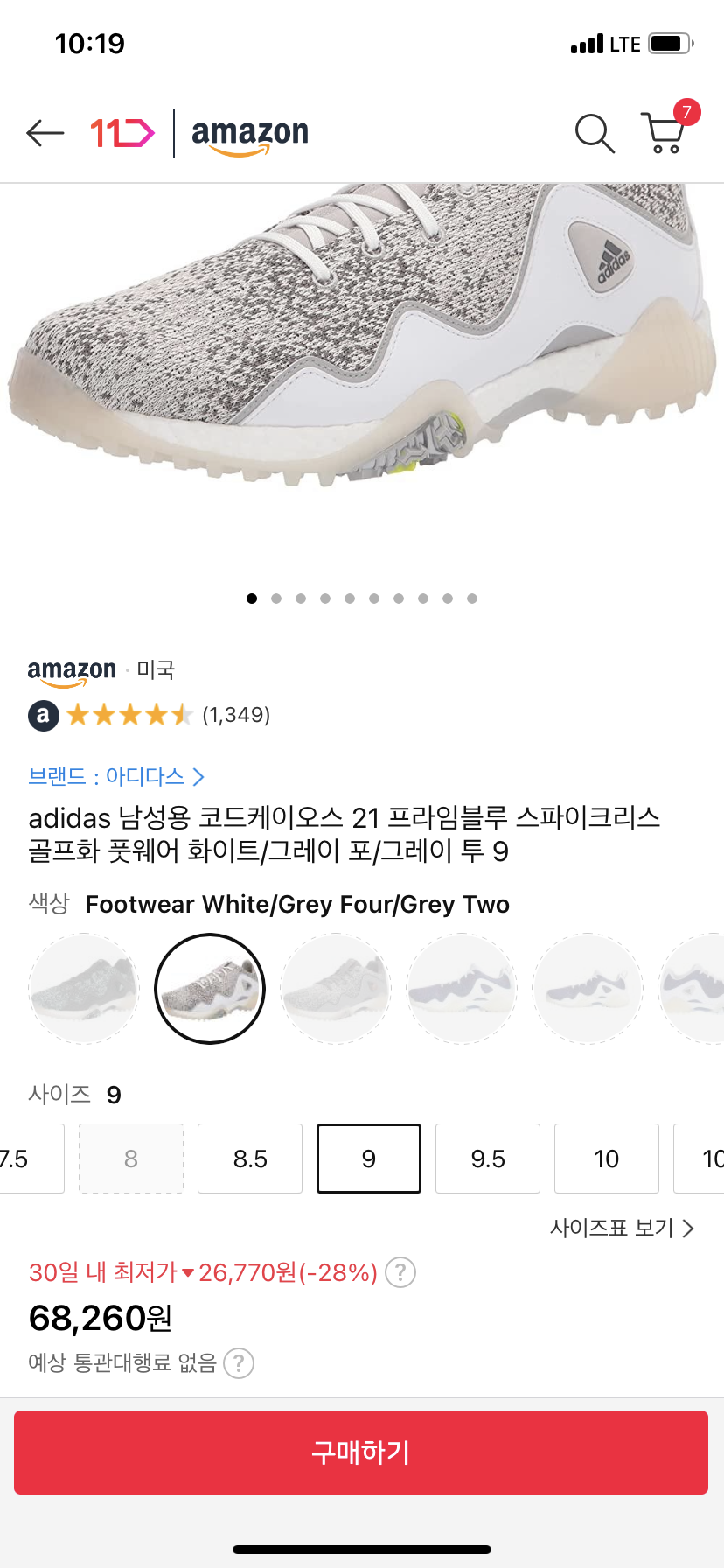 저도 몇 번을 참아오다, 지난달 15일 미국 아마존에서 9 size 최저가를 찍었길래