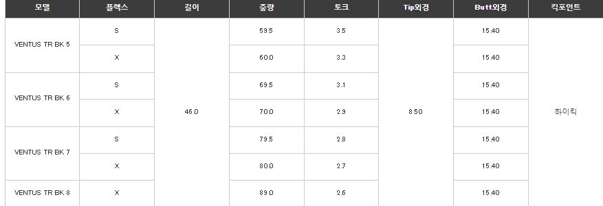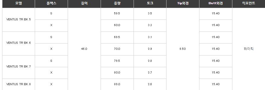 블랙 5s : 57.5g 3.7tq -> TR블랙 5s : 59.5g 3.5tq