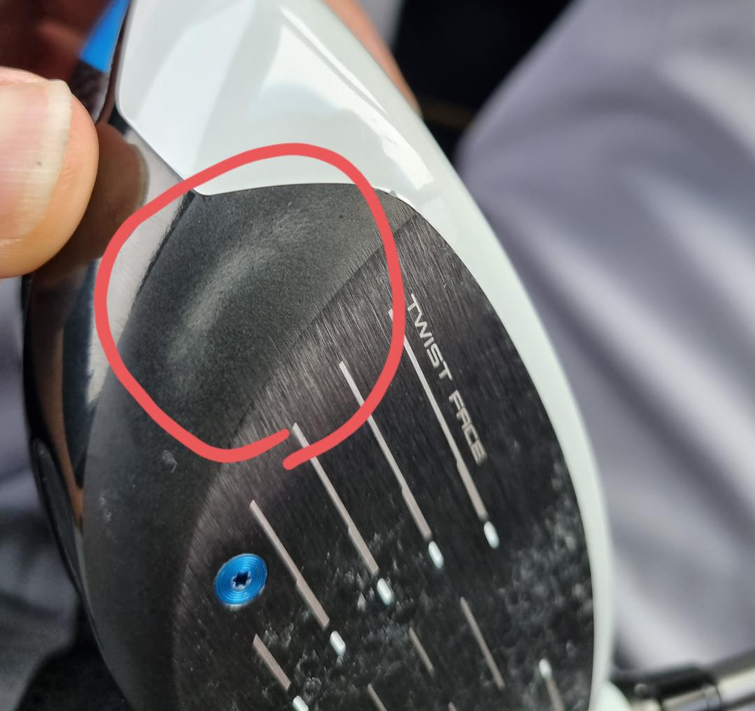 테일레메이드는 저부분 함몰이 잘 됩니다. 특징이죠. 보통 찍어 치는 분들이 저렇게 되더라구요 저도 초보때 그렇게 쳤고요저부위는 원칙적으로 무상이 되는 부분이 아니지만 저는 지난번에 구매한지 한달 안되어 무상 처리 받았습니다. M6였구요