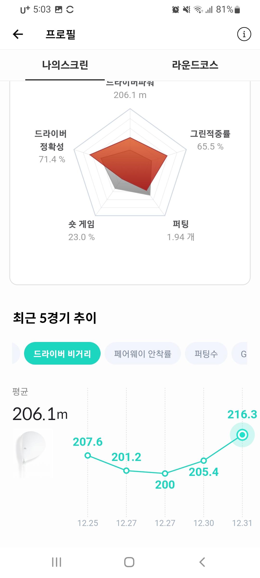 드디어 1년 만에 스피드도 늘고, 평균 비거리가 200에 도달.ㅠ ㅠ
