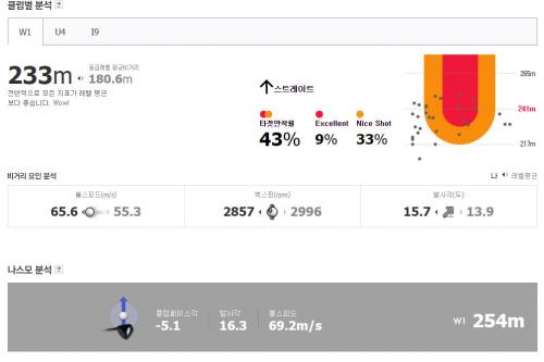 실제 필드에서는 100% 힘보다는 부드럽게 치는 타입이라서.. 치기 딱 좋습니다. 스트레이트로 잘 날아갑니다. 스크린에서는 좀 쌔게치면 드로우 구질로 날아갑니다.