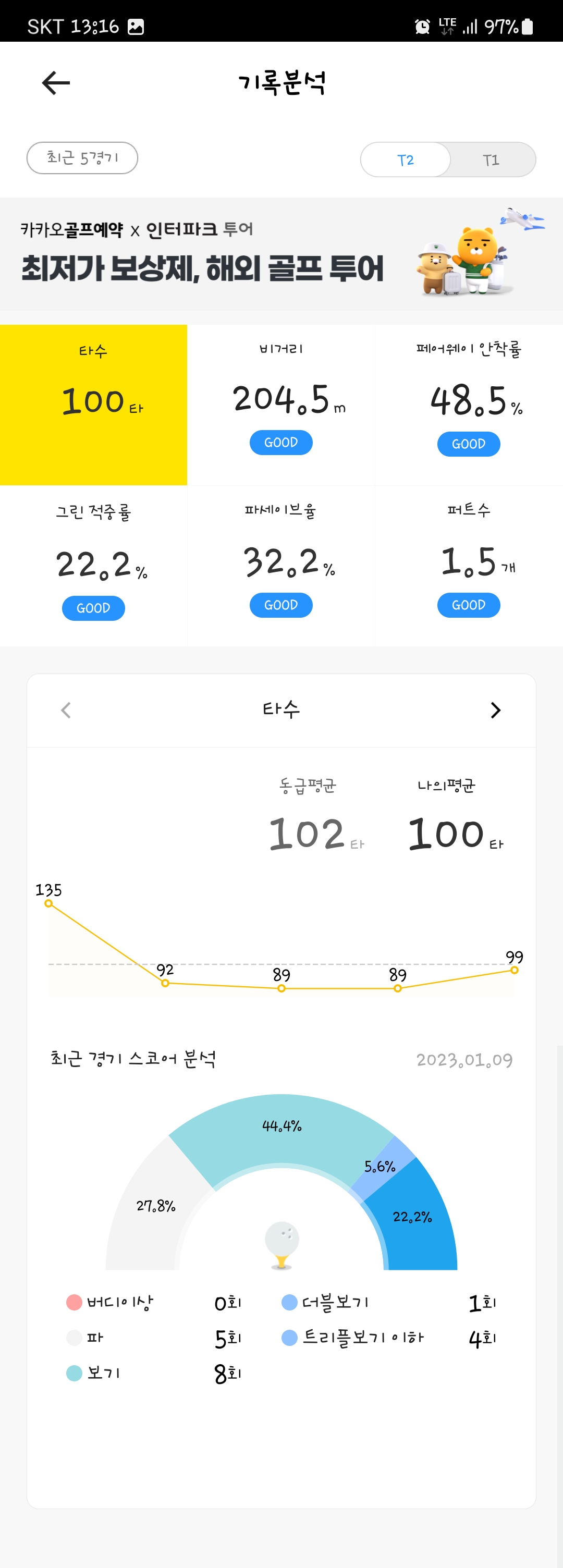 향후 아파트 연습장에서 주 1~3회정도 연습하며 간간히 카카오 스크린만 치러 다니고 있습니다