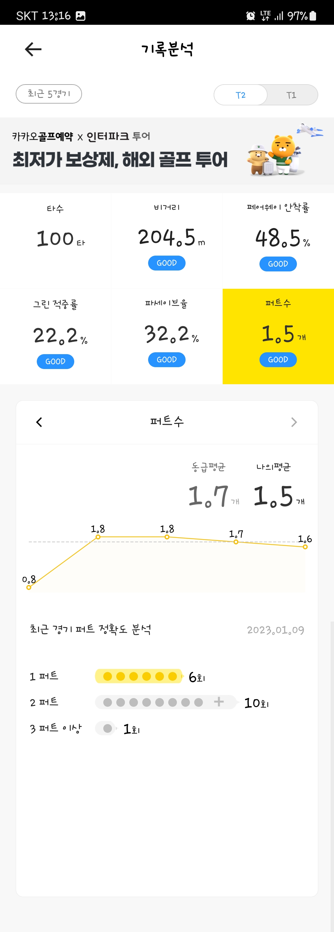 퍼터의 무서움을 알지만 와닿지는 않는 느낌이네요.. 퍼터 좋은거 싼거 쳐봐도 모를 것도 같고..