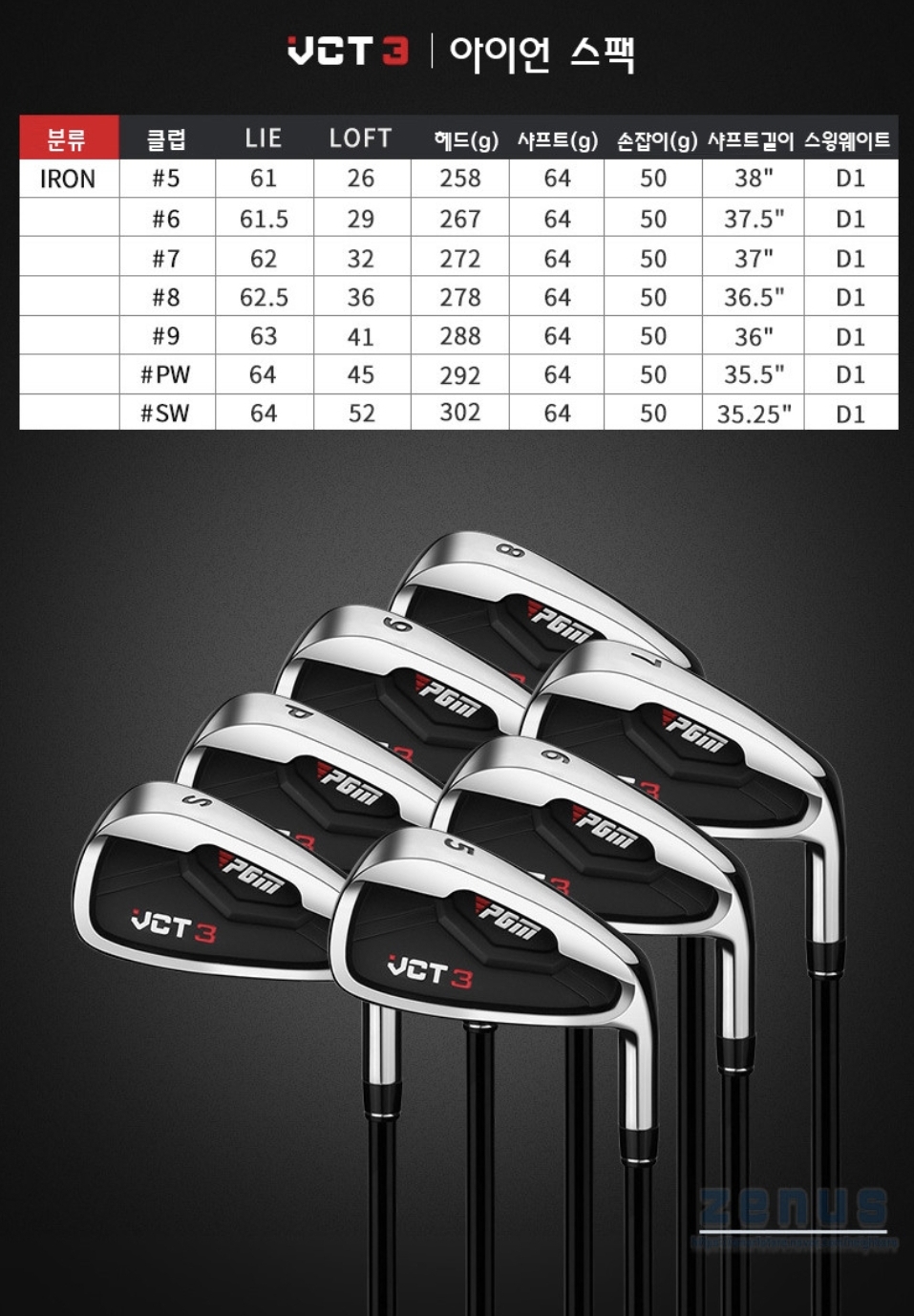 PWIRON[45도] VCT3 / 샤프트 스탁 R / 비거리 110M 이하 스윙크기나 스피드로 조절..