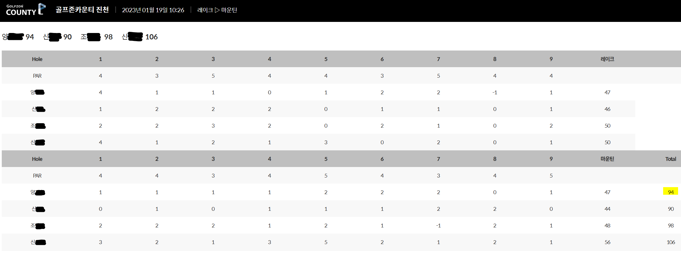 90타 친 친구는 원래 80대초반 치는 친구이고 나머지는 보기플레이어입니다.