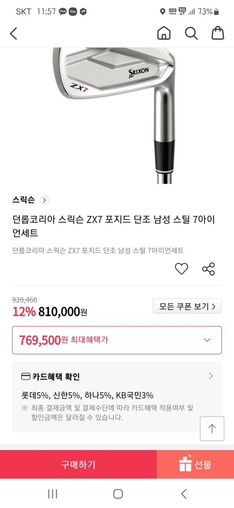 제 기준에서는 ZX5 아이언(픽업)+마루망 골프공 3세트(택배)로 했을 때