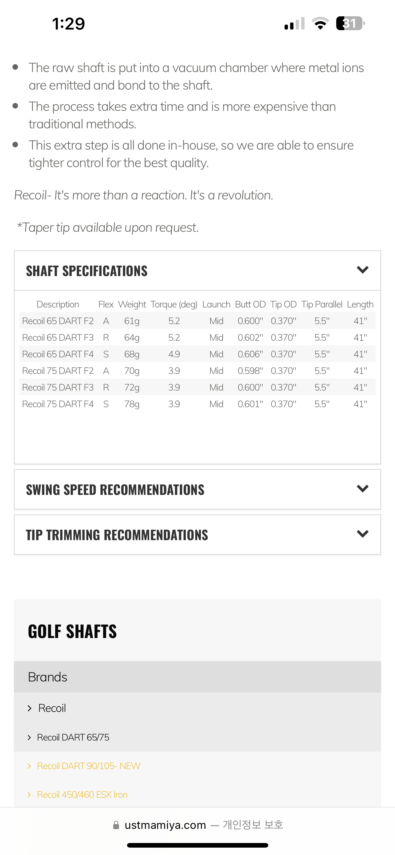 UST Recoil Dart F3 75 Regular 샤프트?