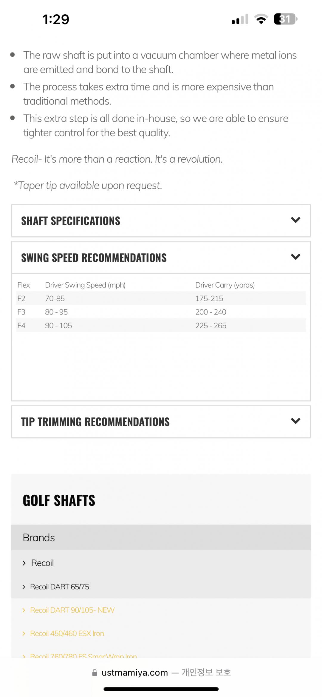 UST Recoil Dart F3 75 Regular 샤프트? > 골프포럼
