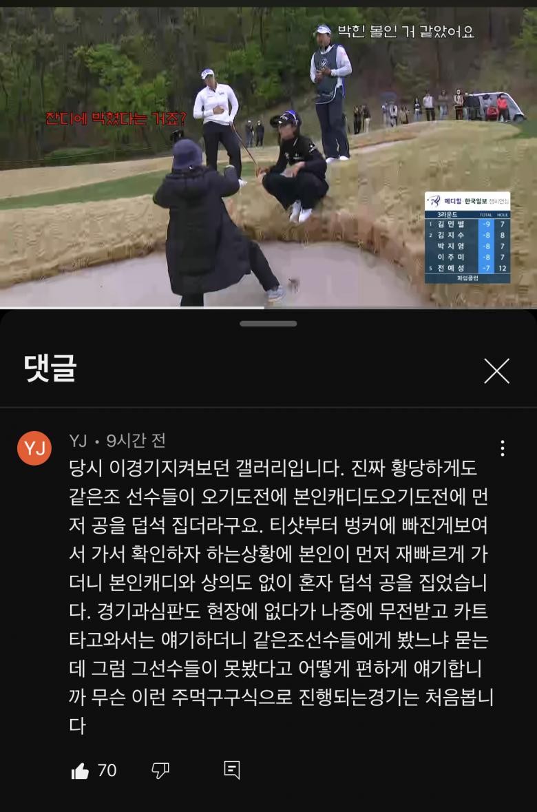 어제 해설에서......지면에 박힌건지 잔디에 박힌건지 확인하려면 공을 집어 들 수 밖에 없다.