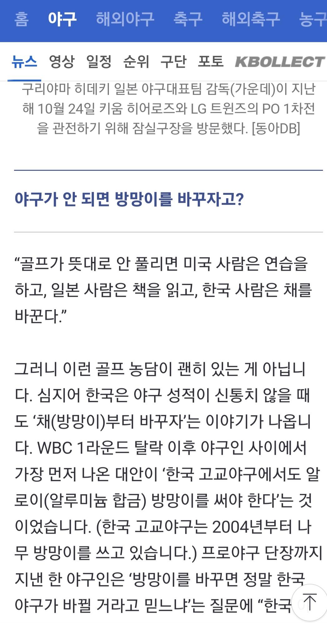 근데 야구쪽도 나무배트 바꾼것에 대해서는 말이 좀 많습니다.