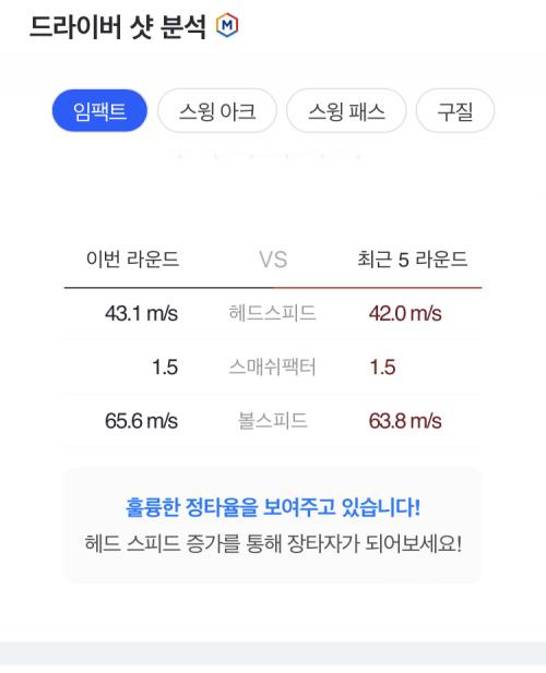 네 저는 트랙맨에서도 1.48-1.50 나오긴 해요;; 근데 정타와 방향성은 또 다른 이야기 더라구요 ㅠ 방향땜에 개고생 하다 벤투스에서 답을 찾았습니다 ㅠㅠ | ||