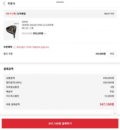 최종가 347,100원 (등급에 따라 적립금 발생)