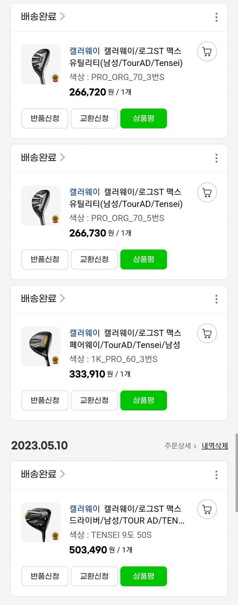 이번 빅스에 스릭슨 zx 드우유 세트를 로그st맥스 드우유 세트로 바꿨습니다. 모두 텐세이 특주 샤프트네요.