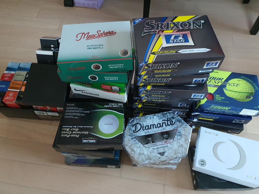 스릭슨, 타이틀리스트, 투어B, 테일러메이드, 볼빅등.. 우레탄커버 볼만 5~6백개 되는거 같네요.