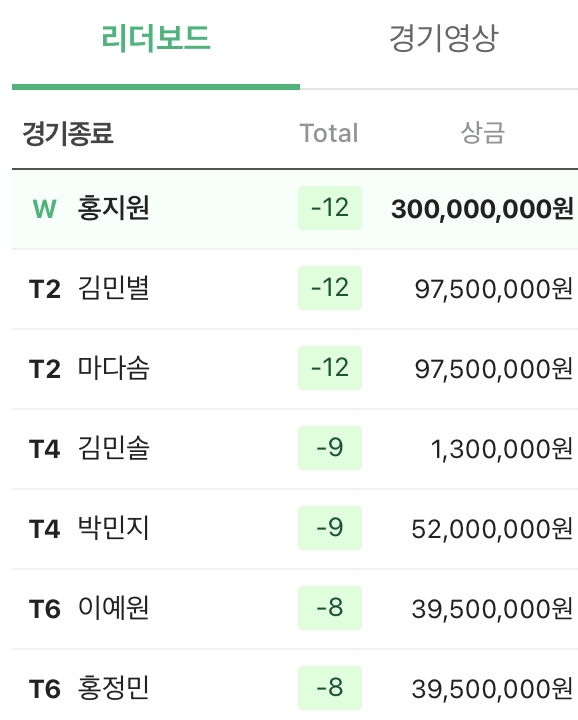 원래 2위 상금이 우승상금의 50~60% 정도 되는 대회가 많은데, 이 대회는 유별나게 40%더라고요.