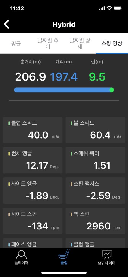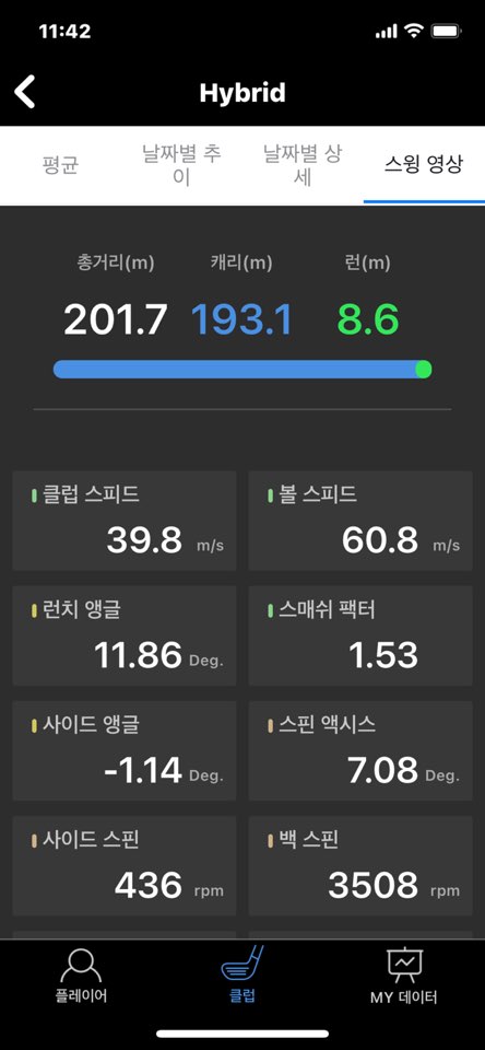보시다시피 잘 친 데이터인데 거의 차이가 없습니다.(연습장 기준 4번 유틸은 190~200정도 봅니다.)