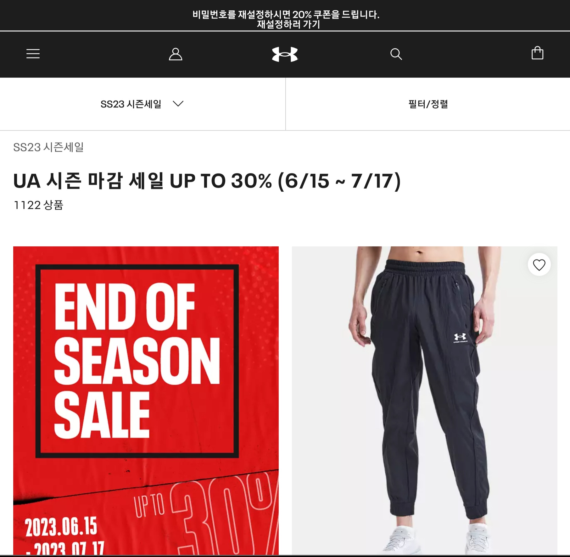 기본 세일에, 비밀번호 바꾸면 20프로 추가할인코드 문자로옵니다. 얘네도 나이키 아디다스처럼 글로벌 온라인 통일하나봐요. 전 반바지와 티셔츠 챙겼네요. 그래봤자 10만원 안짝에 나옵니다.