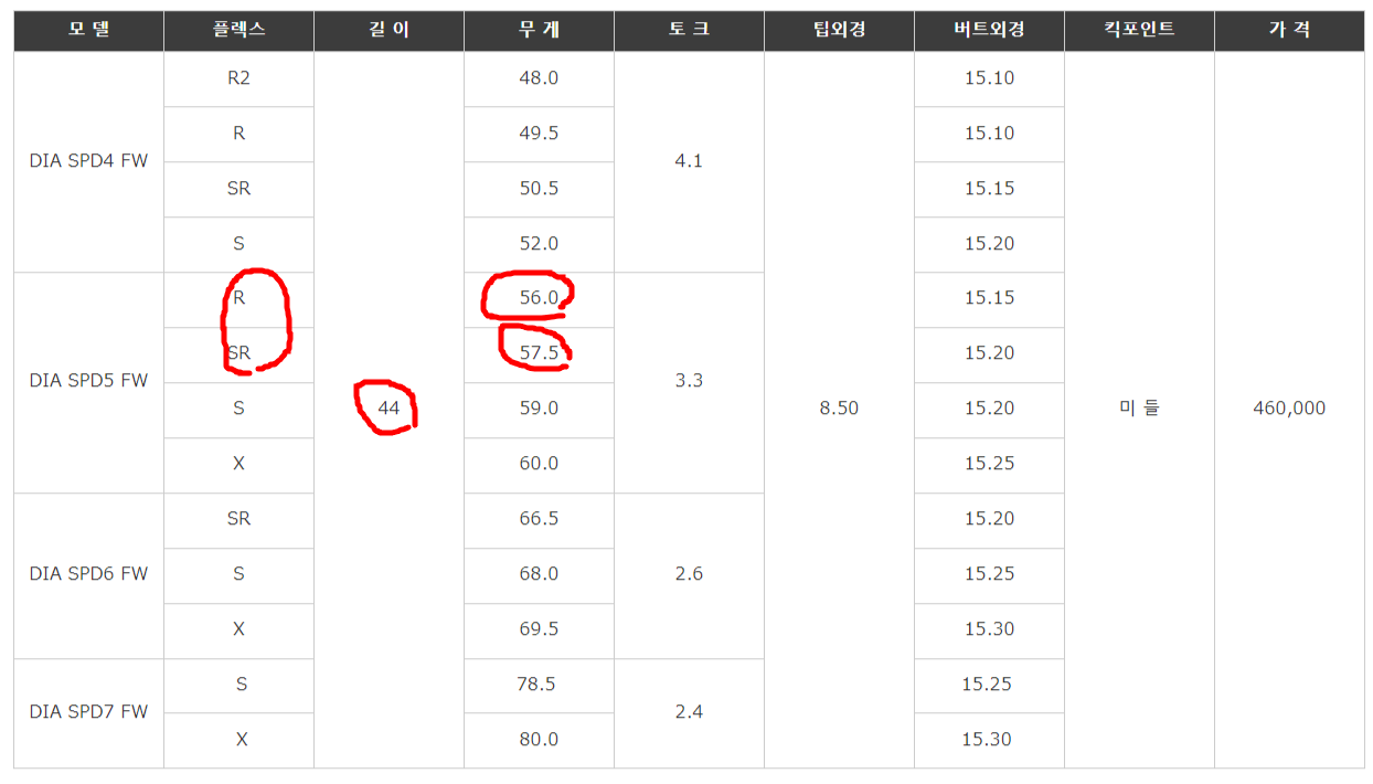 드라이버랑 스펙을 맞춰서 57.5g짜리 SR을 해야할지..