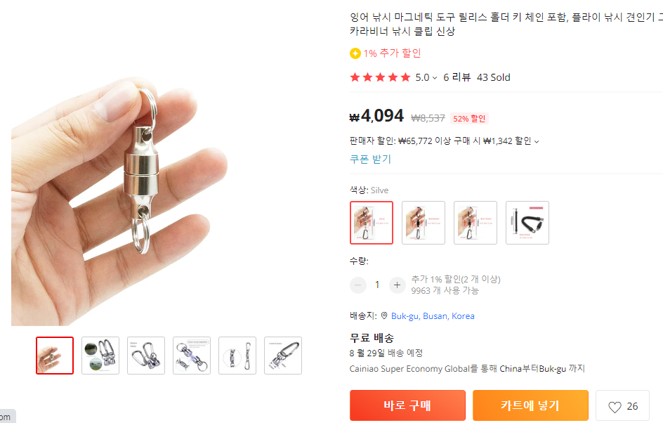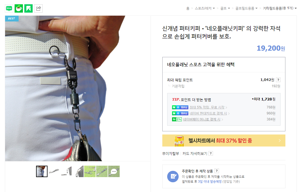 알리에서는 낙시 걸이 낚시 자석 등으로 검색하면 유사한 상품이 많이 검색됩니다. 무료 5일 배송으로 된 제품을 고르시면 나름 빠른 배송으로 옵니다. 퍼터커버에 집게가 없어서 이것도 알리에서 구매했으나 이건 엄청 오래 걸렸습니다. 여튼 이게 도착하고 두 제품을 조합해서 사용해보니 그럭저럭 쓸만합니다.