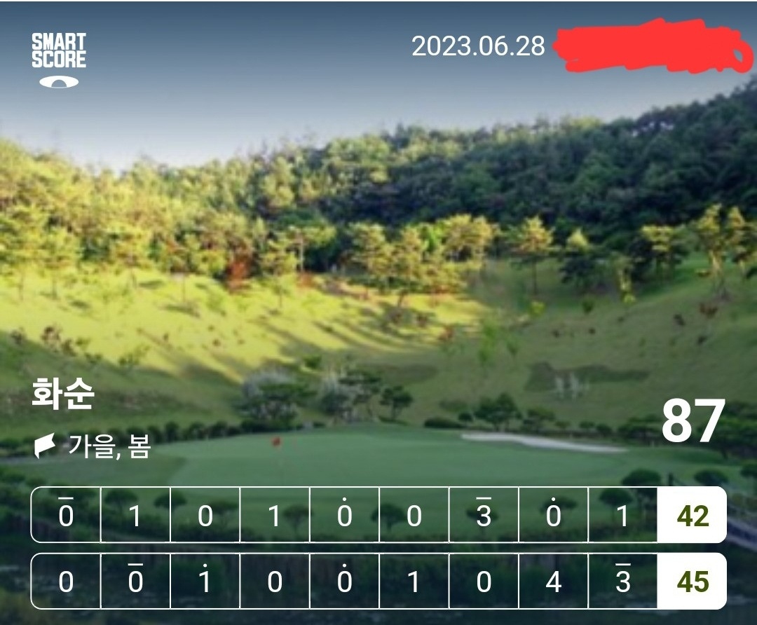 오비 5개(티샷오비 4개, 세컨오비 1개) 한것치고는 스코어가 아름다워서 골포에 신고합니다.