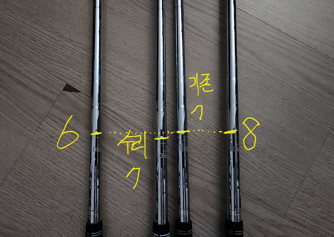 그러다보니 4번 아이언부터 9번까지 나란히 놓고보면 7번만 비례하지 않게 짧아지네요.