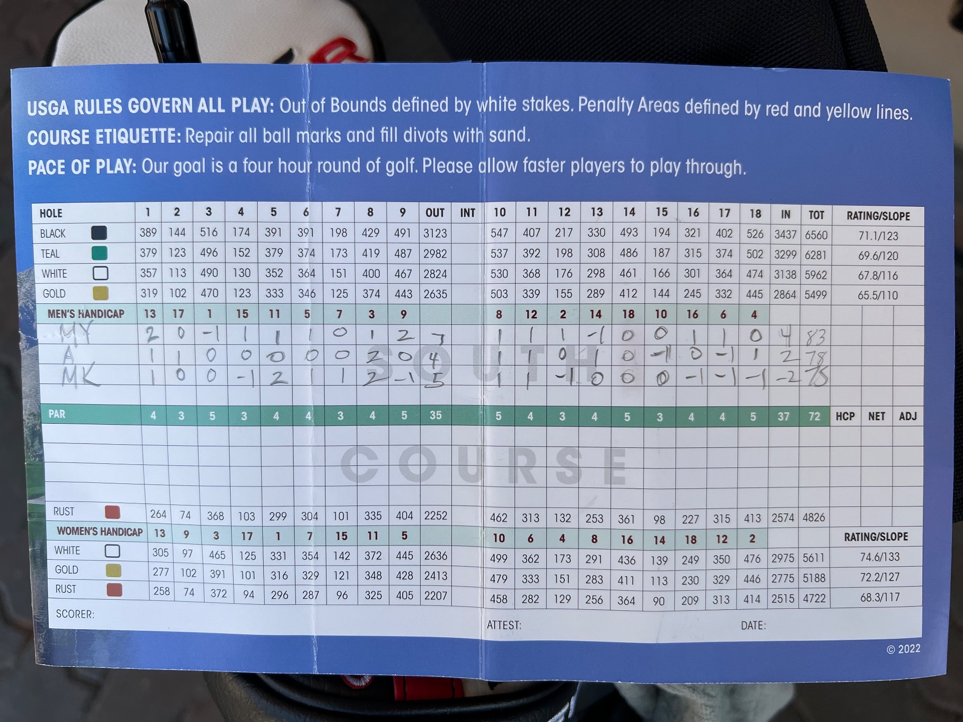 그전 기록은 +8 으로 7자를 보지 못하고 있었는데 , 첨 가본 코스에서 그것도 45도를 웃도는 사막 날씨에서 기록했네요.