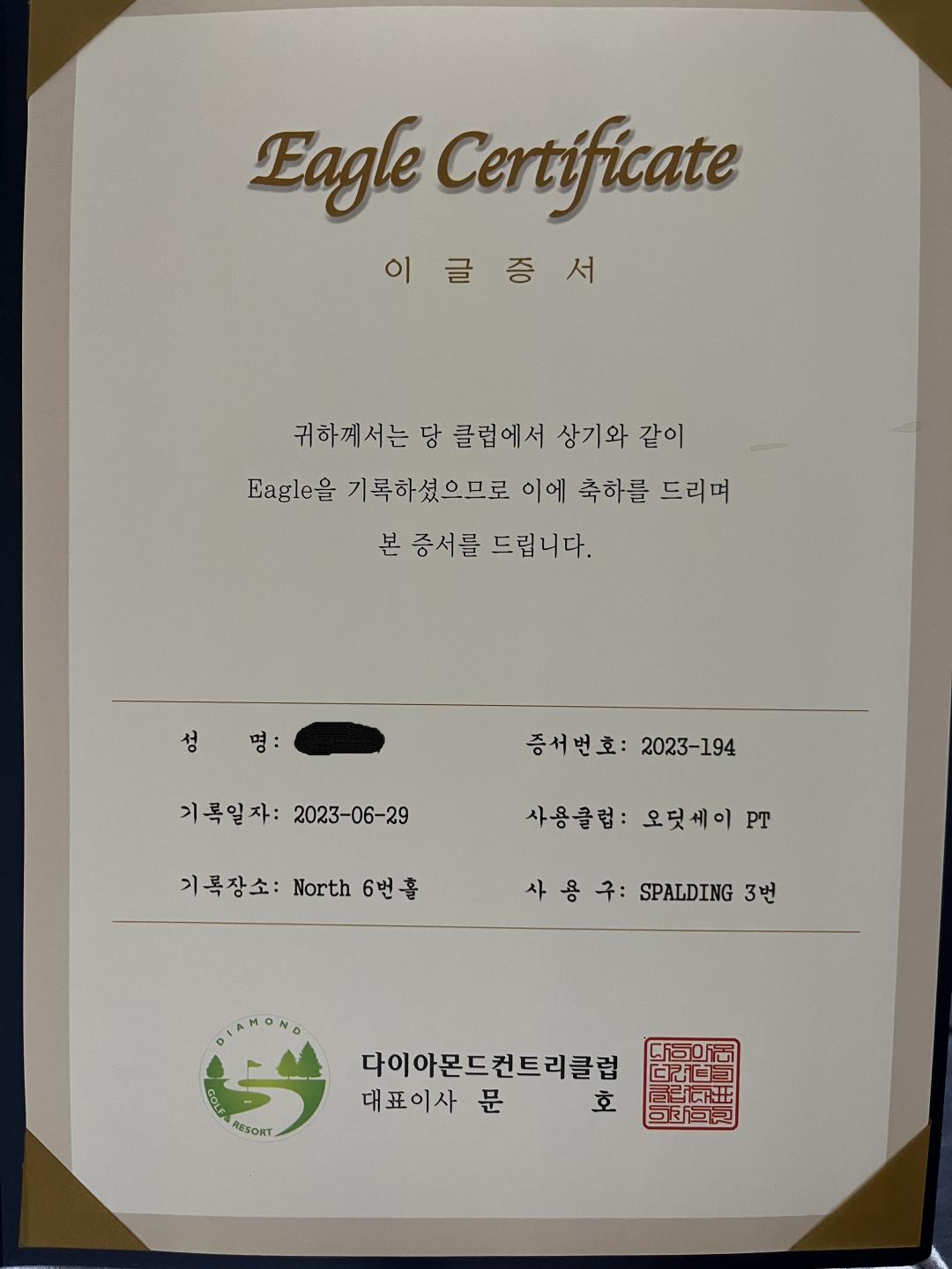 퍼팅이글도 증서를 주는데가 있네요.전 샷이글만 주는줄 알았는데요.