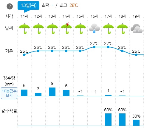 뇌우면 위험하니 쉬시는게 좋을듯 합니다.....