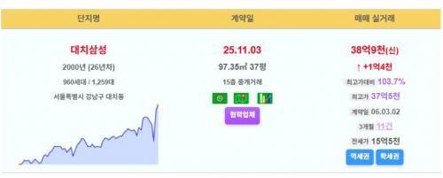 강남구 강남한양수자인(4단지) 34평 20.5억 신고가