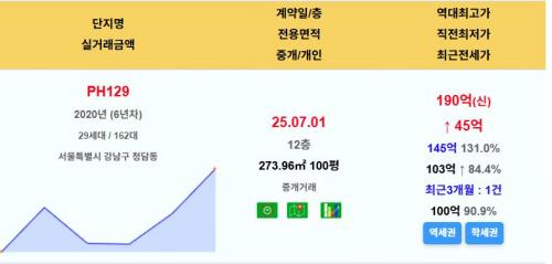 강남구 현대6차(78~81,83,84,86,87동) 64평 103억 신고가
