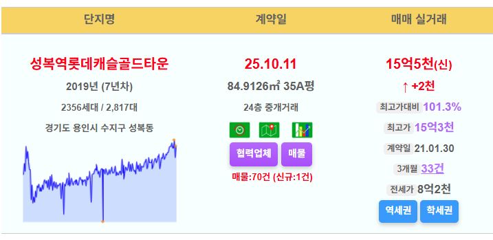 용인시 수지구 성복역롯데캐슬골드타운 35평 15.5억 신고가