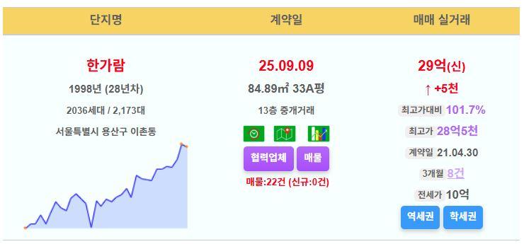 용산구 한가람 33평 29억 신고가