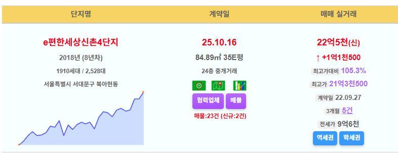 서대문 e편한세상신촌4단지 35평 22.5억 신고가