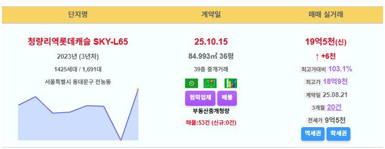 동대문 청량리역롯데캐슬SKY-L65 36평 19.5억 신고가