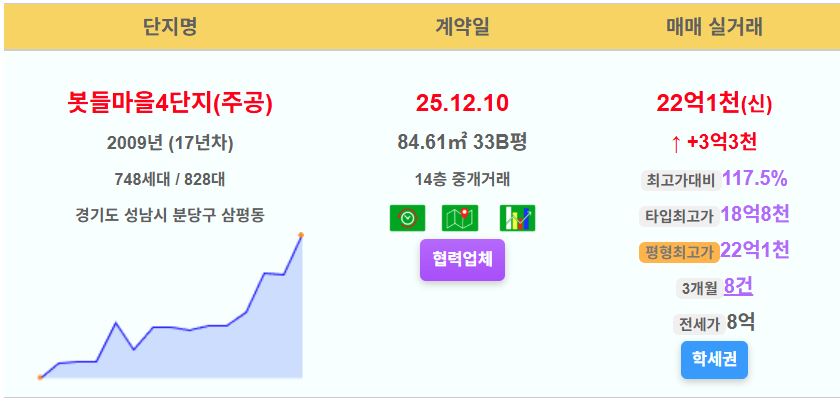 분당 봇들마을4단지(주공) 33평 22.1억 신고가