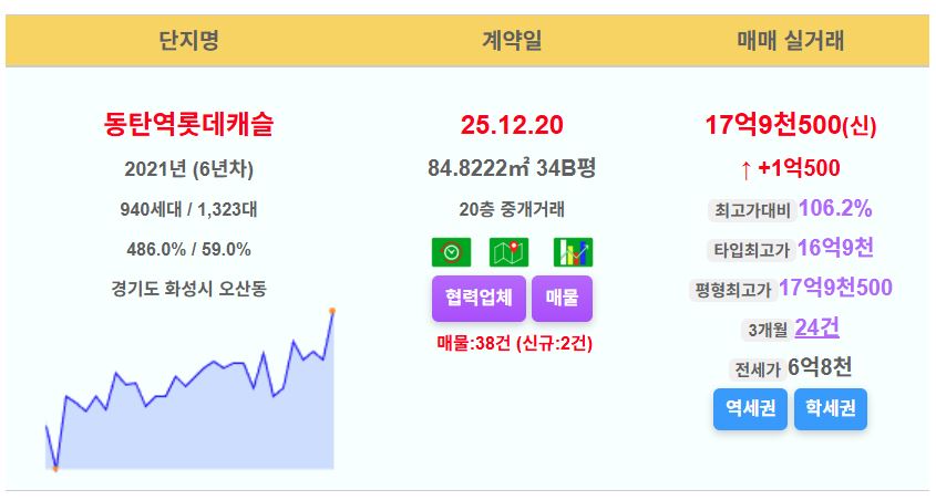 은평구 DMCSK뷰아이파크포레 17평 6.48억 신고가