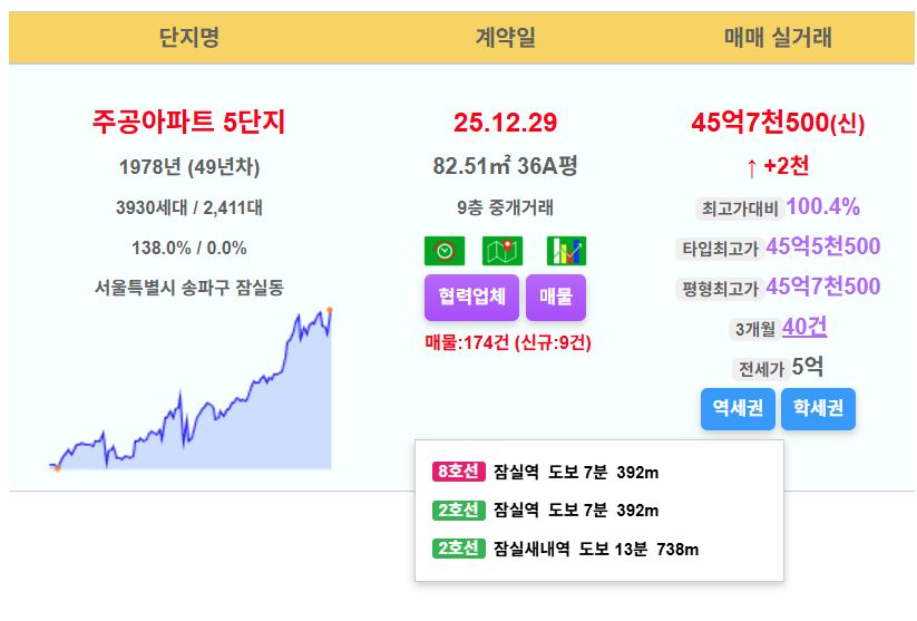 송파구 가락쌍용(2차) 32평 18.4억 신고가