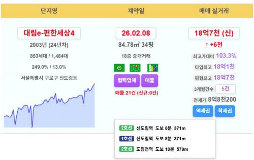 구로구 대림e-편한세상4 18.7억 신고가~!!