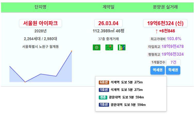 노원구 서울원아이파크 19.63억 신고가~!!