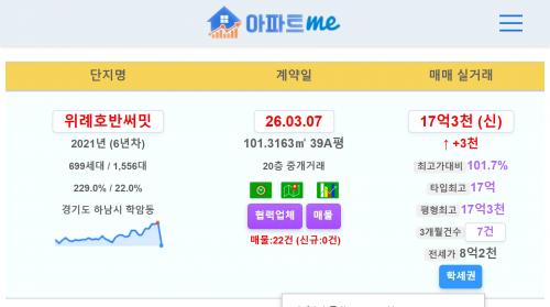 위례호반써밋 39평 17.3억 신고가~!!