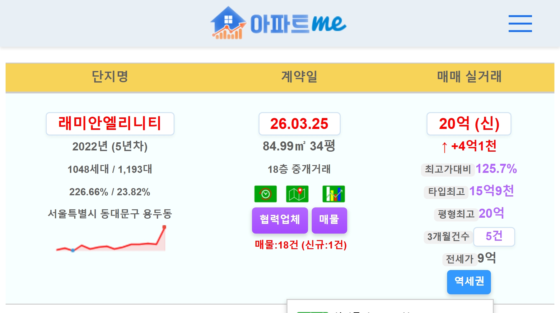 동대문 래미안엘리니티 34평 20억 신고가~!!