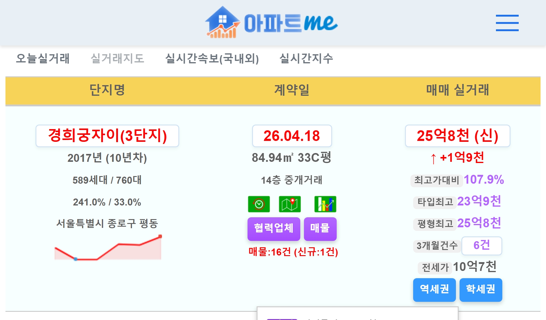 종로구 경희궁자이(3단지) 25.8억 신고가~!!